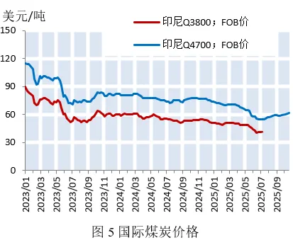 进口煤价方面,煤价小幅上升。截至10月24日,印尼Q4700动力煤FOB价报收于61.7美元/吨,较上期小幅上升2.49%(如图5)。