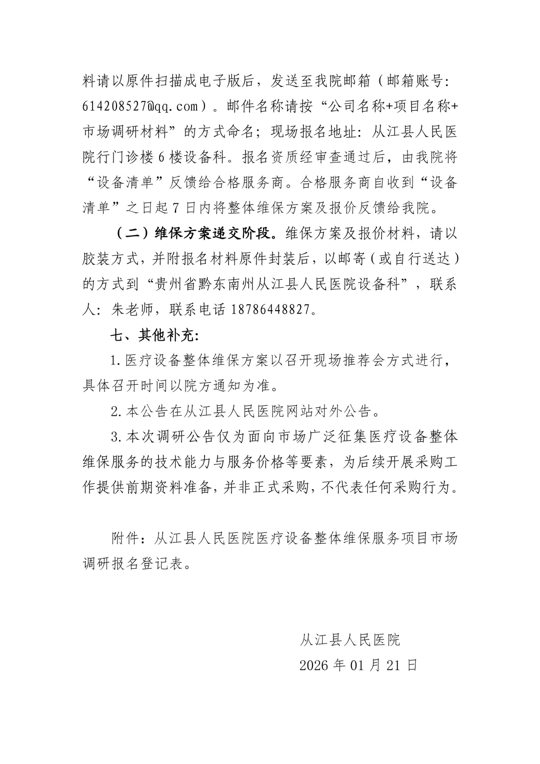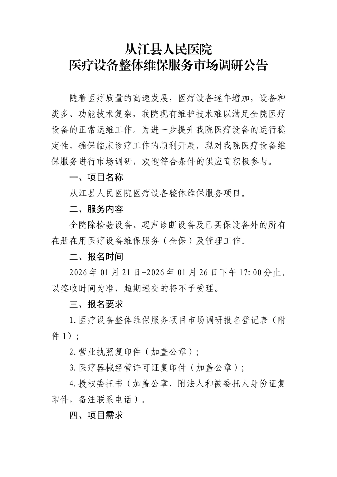 从江县人民医院医疗设备整体维保服务市场调研公告