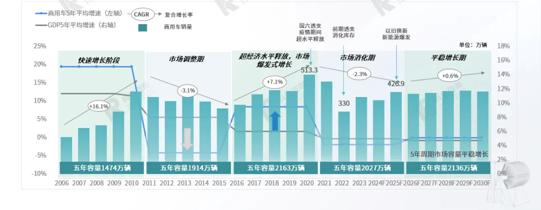 2026-2030年经济高质量发展,增速平稳,商用车市场进入新一轮上升周期,市场平稳增长。
