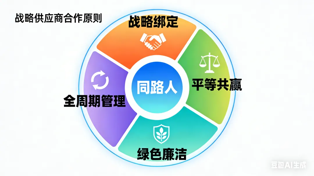 与供应商签订《廉洁合作协议》,杜绝利益输送;设立分级激励机制(A 级供应商优先直委、联合研发资源倾斜),对优质伙伴开放数字化工具与技术标准,共同降本增效。 - 全周期管控,动态优化