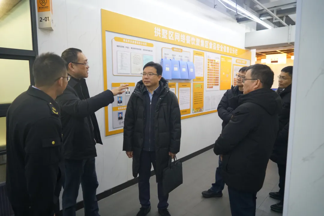 在新天地农贸市场无堂食外卖聚集区,调研组详细了解了拱墅区打造无堂食外卖聚集区示范点的相关工作,实地查看骑手休憩驿站的建设运行、商户日常经营及管理制度落实情况,对拱墅区的创新探索和治理成效表示肯定。