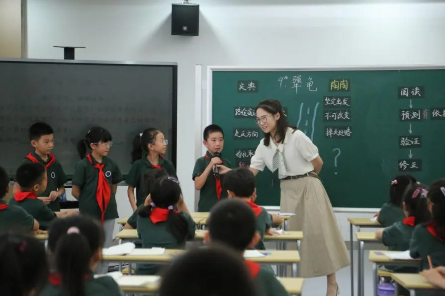 为紧扣“面向每一个,人人会创造,个个都出彩”的育人目标,落实“儿童研学课堂”深化要求,三年级语文组以“面向每一个,人人会学习”为核心,启动学科建模三级深度实践行动,聚焦学生主体实践,全力支持儿童主动学、学会学、享受学,助力每一位学生成为主动学习者、自觉研究者和自我教育者。开学至今,三年级语文组已扎实开展8节深度实践课,构建起“中高创新示范课 —级部深度研究课 — 团组牵手探索课”的三级实践体系,其中中高创新示范课1节、级部深度研究课2节、团组联动探索课5节。授课教师紧扣“四学四创”理念,围绕三个“好”行动与六个“面向每一个”核心要求,进行全方位、精准化评价,全程锚定“大胆猜想、多向探索、勇敢突破、科学求证、迁移创生”的创新人才培养目标,让“儿童研学课堂”真正成为学生成长的沃土。