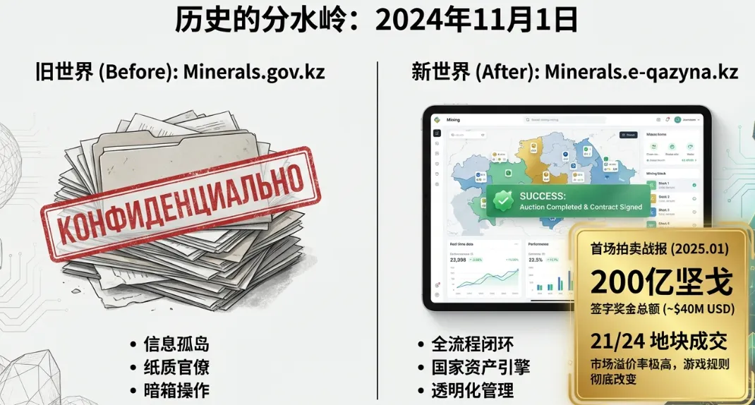 维度 | Minerals.gov.kz (旧版) | 矿产资源电子平台 (新版) | 变革意义 |
