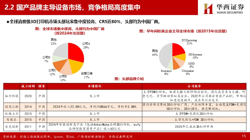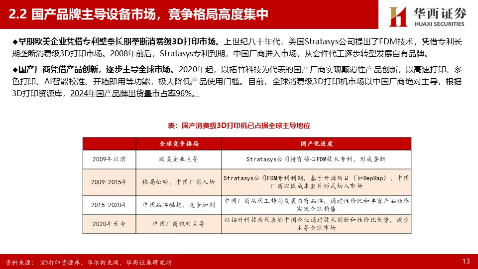 2、全球消费级3D打印市场规模快速增长,国产设备占主要份额。