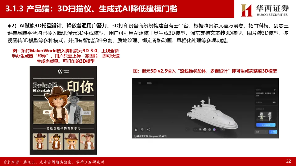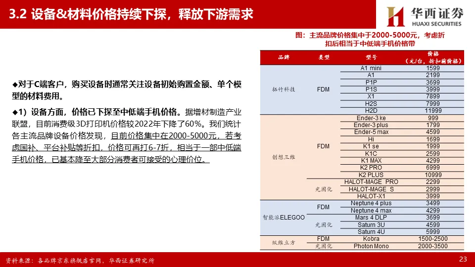 3、AI赋能产品升级&价格持续下降,不断释放3D打印需求。