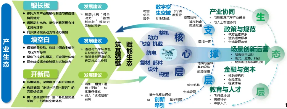 提升飞行汽车产业整体竞争力,必须推动产业从“造产品”向“造体系”转变,其核心路径在于“筑基强链”与“赋能生态”: