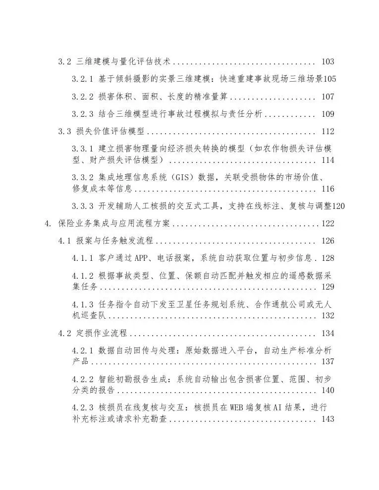 上述多源数据通过统一的时空基准进行融合处理,并依托云计算平台与专业分析模型(如变化检测算法、三维差异分析、结构损伤识别模型等)进行自动化或半自动化分析。整个方案的实施将显著改变现有作业模式,其预期带来的核心能力提升可概括为以下几个方面:实现定损作业的远程化与非接触式,保障查勘人员安全并大幅提升响应速度;通过数据驱动的客观分析,减少定损结果的人为争议与道德风险;积累形成低空风险案例数据库,为精准建模与风险预测提供数据资产;最终支撑保险产品与服务模式的创新。