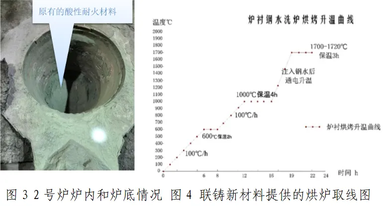 2025年11月18日14时59分,联铸公司筑炉工肖某升对华峰重工2号中频炉新炉衬开始烘炉,烘炉方式采用钢水洗炉方式进行,烘烤前在中频炉坩埚内加入了3吨压块刨花钢屑(42CrMo材质),升温速度控制在100°C/小时,并烘炉至当日20时17分关闭电源。