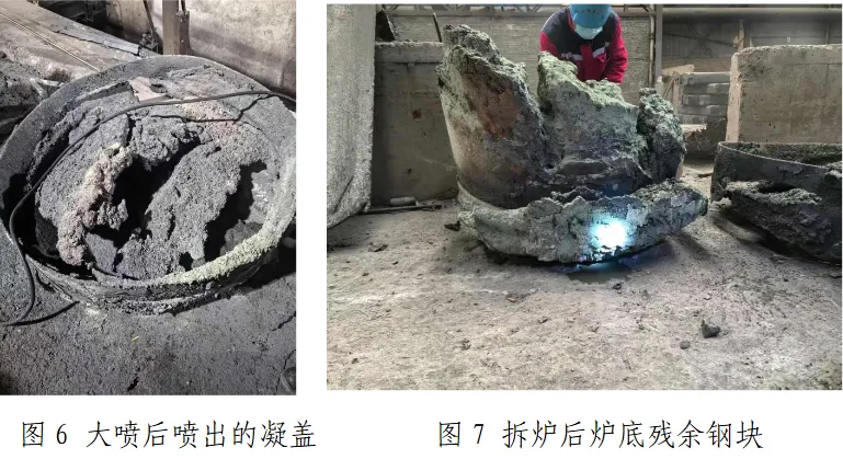 本次事发2号中频炉初次使用中性耐火材料(氧化铝和镁铝尖晶石),砌筑时未将炉底原有酸性耐火材料(二氧化硅)彻底拆除,导致炉底新砌筑耐材厚度不足,且在高温下不能与原有酸性耐材有效固结,使用钢水洗炉时炉内钢水在中频炉磁场搅拌下带动钢水将新砌筑的炉底耐火材料冲刷上浮。