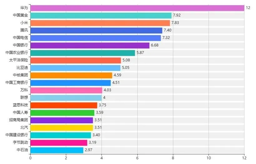 值得關注的是,與上一週期相比,本週期內傳播力表現優異的企業所屬行業範圍進一步擴大,涵蓋科技、金融、能源、家電、汽車及房地產等多個領域。