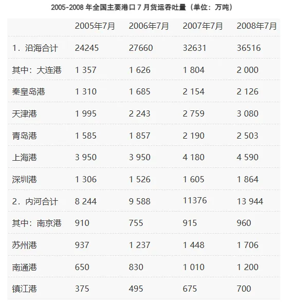 ▶秦皇岛港:2008年7月2126万吨,2007年7月2154万吨,2126<2154,同比下降;