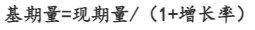 公式中需使用增长率(百分比),若材料给出增长量,需改用“基期量=现期量-增长量”计算;