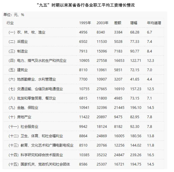 下列各行业职工平均工资增长速度最高的行业是?