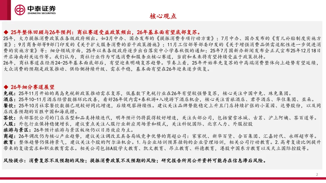 中泰证券 2025 年 12 月发布的 2026 年商社行业年度策略报告指出,商社行业受益于多项政策扶持,历经 2024-2025 年基本面底部后,2026 年有望迎来明确复苏趋势。
