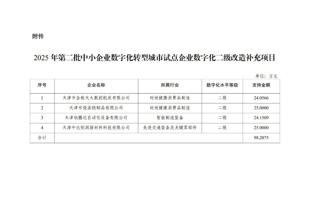 按照《关于开展2025年第二批中小企业数字化转型城市试点企业数字化二级改造项目奖补资金申报工作的函》有关要求,现将2025年第二批中小企业数字化转型城市试点企业数字化二级改造补充项目予以公示,公示期2026年1月21日到2026年1月25日。