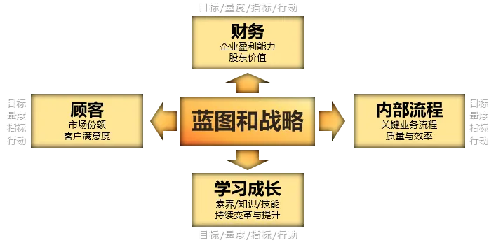 平衡计分卡(BSC)是一种战略管理工具,它将组织的战略落实为可操作的衡量指标和目标值,从财务、客户、内部流程、学习成长四个维度全方位衡量企业绩效。