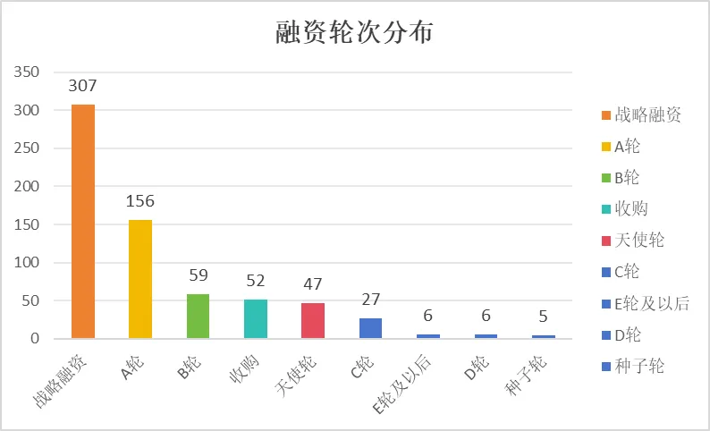 轮次分布上,战略融资以307起占据绝对主导,占比达45.1%,其次为A轮156起(22.9%)、B轮59起(8.7%),收购事件52起、天使轮47起、C轮27起。战略融资的高占比,反映出行业产业链整合加速的趋势,头部企业与产业资本通过战略投资强化技术协同、完善生态布局,实现资源互补与规模效应;整体来看,资金向“头部成熟企业+高潜力早期项目”双向聚集,资源配置效率持续优化,行业分化态势进一步加剧。