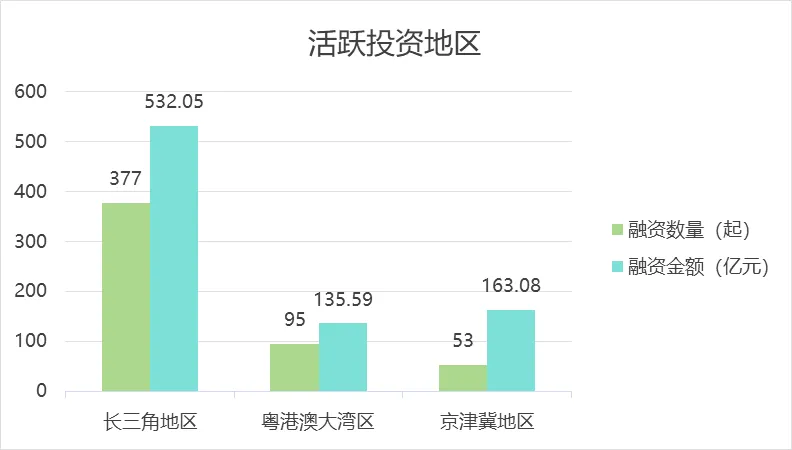 地域维度上,半导体融资呈现“核心集聚、多点支撑”的格局,长三角、粤港澳大湾区、京津冀三大区域成为资本布局的核心阵地,合计融资事件占比超80%,形成各有侧重、协同互补的差异化发展生态。其中,长三角地区以377起融资事件、532.05亿元融资金额稳居首位,凭借全产业链优势成为行业融资的“主战场”;粤港澳大湾区以95起事件、135.59亿元额度紧随其后,京津冀地区则以53起事件、163.08亿元额度展现出高额度均值的特点。