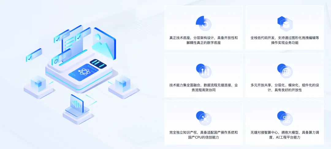 真正技术底座,分层架构设计,具备开放性和解耦性真正的数字底座;