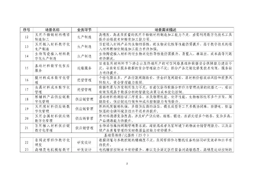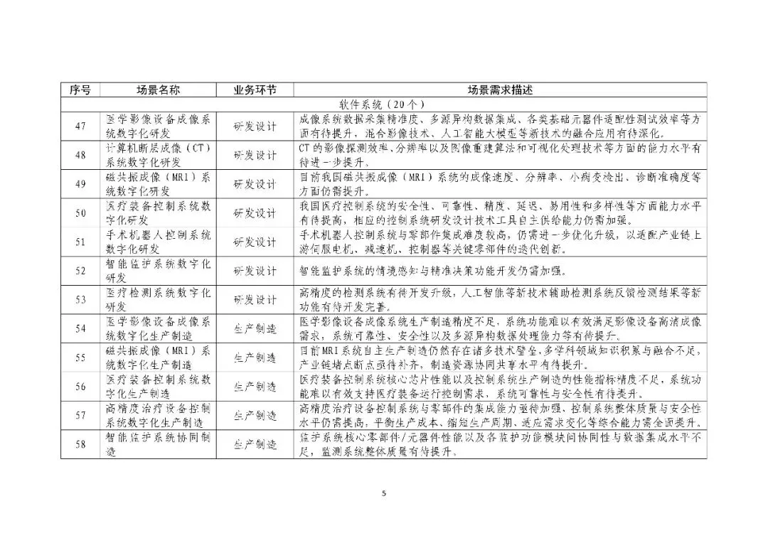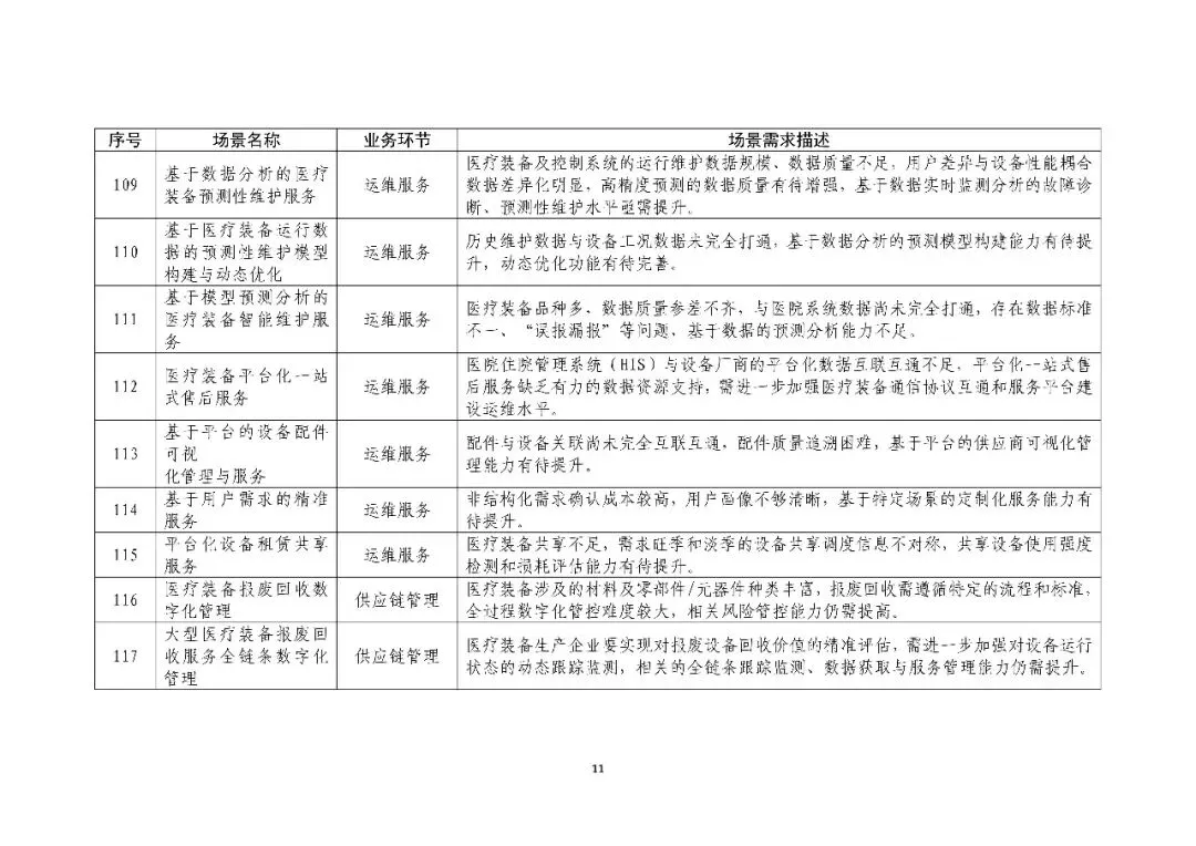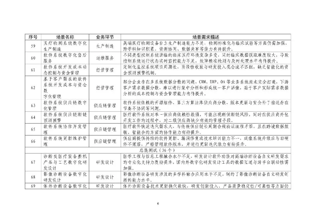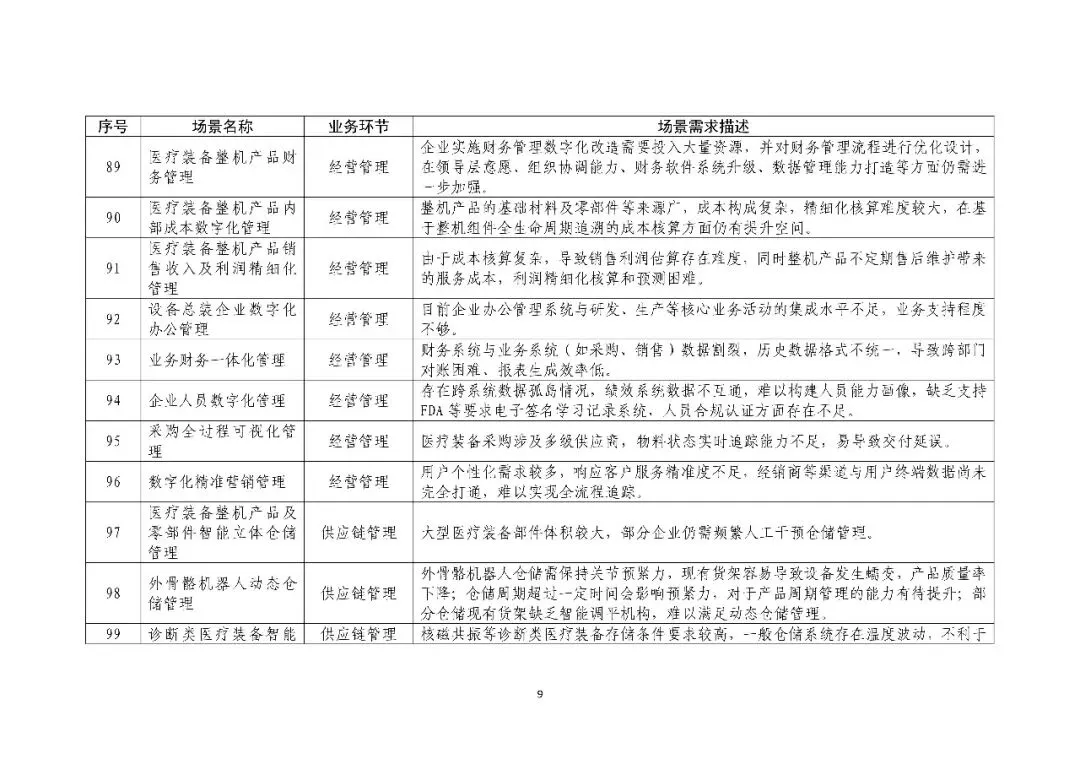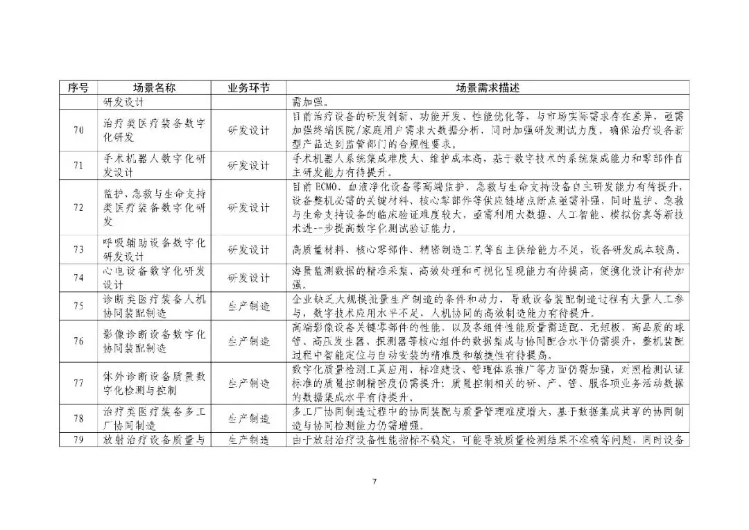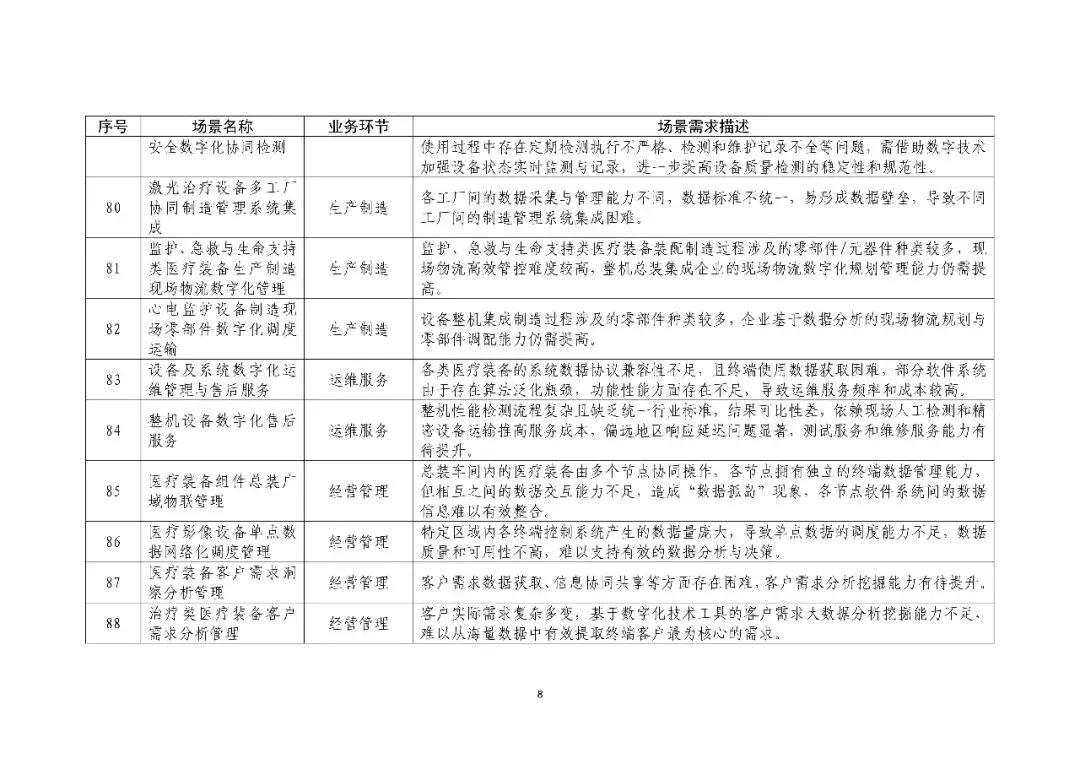 《医疗装备行业数字化转型场景需求清单》