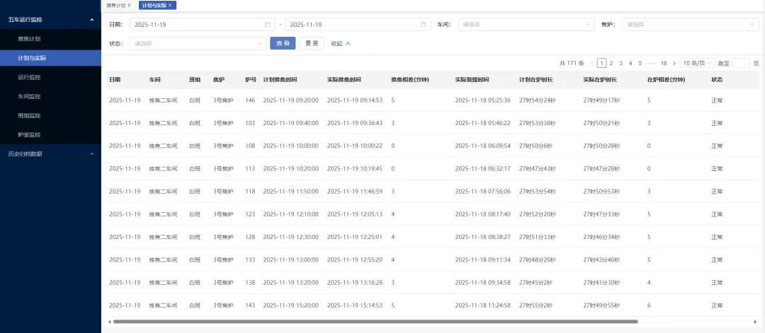 排产调度协同效率显著优化:推焦计划与实际执行平均偏差降低,工序衔接断层发生率下降,设备闲置时间减少,生产节奏稳定性提升。