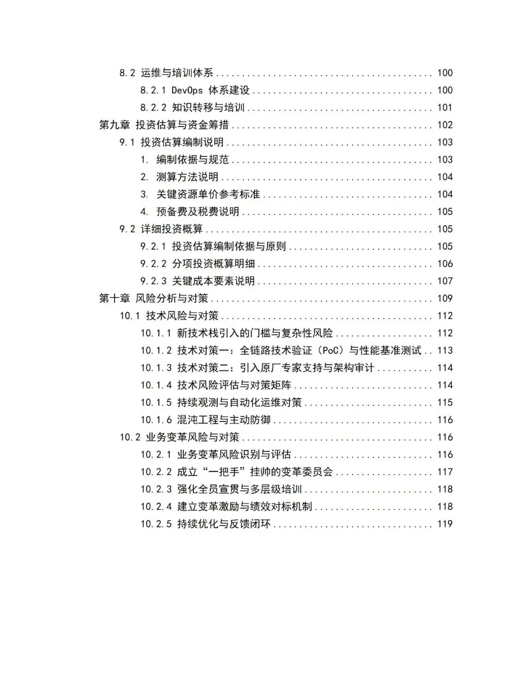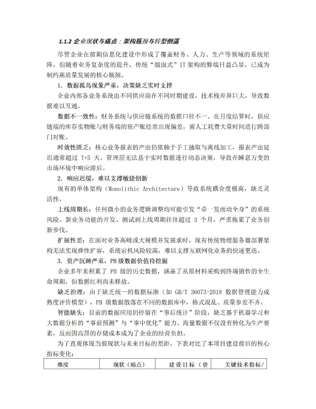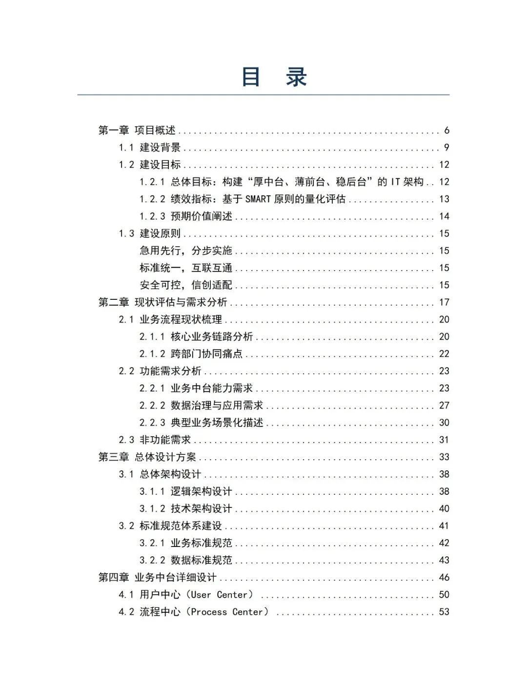声明:本文内容来源于公众号“无忧智库”,版权归原作者所有(如侵权,扫描上方二维码联系删除)。风陵渡进行深度解读,欢迎大家转载分享。最近,我系统研读了一份某大型国企面向“十五五”的数字化转型与业务中台建设方案。这份长达百余页的材料,不仅是一份项目规划书,更是一张清晰的“数字化转型体系化作战地图”,涵盖了从战略定位、现状诊断、架构设计、实施路径到风险管控的全链条。如果你是一名数字化顾问,或正在为企业规划中台与数字化转型路径,这份材料中有不少值得借鉴的方法论与实操思考。一、它不仅仅是一个IT项目,而是一次“业务重构”很多企业把“数字化转型”简单理解为“上系统、搭平台”,但这份方案开篇就明确:数字化转型是“管理模式的重塑”,目标是实现从“人治”向“数治”的转变。它强调“厚中台、薄前台、稳后台”的架构理念,背后是对业务能力复用、组织敏捷响应和数据驱动决策的深层追求。战略与业务双向拉通:方案没有孤立谈技术,而是从国家战略(如“链长制”)、行业趋势、企业痛点切入,构建了“为什么转、转什么、怎么转”的逻辑闭环。价值显性化:明确提出了“业务服务复用率≥60%”“开发周期缩短40%”等SMART指标,让转型成果可衡量、可感知。二、现状评估:不只是“盘点系统”,更是“诊断业务”第二章的现状评估没有停留在“系统清单”层面,而是深入业务流程断点、数据孤岛、协同痛点。例如,它指出:流程视角而非系统视角:通过BPMN等工具梳理核心业务流,识别跨系统、跨部门的断点,让问题暴露在“流程之间”而非“系统之内”。数据现状与治理需求联动分析:指出“数据标准不一”导致分析滞后,直接牵引出后续数据中台的建设必要性。三、架构设计:中台不是“大单体”,而是“能力组件化”方案的中台设计部分(第四、五章)体现出了明显的“领域驱动设计(DDD)”思想,将用户、订单、流程、数据等核心业务能力封装为可复用的服务中心。特别值得关注的是:业务中台与数据中台协同设计:业务中台负责流程与规则,数据中台负责资产与智能,两者通过API网关与数据服务层对接,形成“业务产生数据、数据反哺业务”的闭环。技术架构与信创合规并重:在采用Spring Cloud、K8s等云原生技术的同时,明确要求符合等保三级、国密算法等安全标准,体现国企项目的合规刚性。中台架构的“服务化”与“原子化”:强调能力拆解到位,避免中台成为新的“大单体”。数据分层治理(ODS→DWD→DWS→ADS):清晰的数据流向与加工层级,是数据中台能否成功的关键。四、实施路径:强调“急用先行、分步上线”,而非“大干快上”很多项目失败在于“一次性全面替换”,而这份方案明确提出“急用先行、分步实施”。例如:渐进式演进:承认转型的长期性与复杂性,不追求一步到位。运维前置与知识转移:在实施阶段就考虑后续运维体系(如DevOps、监控告警),并规划分层培训(领导、业务、技术),确保“建得成、用得好”。五、风险管控:不仅谈“技术风险”,更关注“业务变革风险”第十章没有停留在“服务器宕机、代码漏洞”等技术层面,而是深刻指出:对策务实:成立“一把手挂帅的变革委员会”、设计激励与考核机制、设置容错期等。变革管理(Change Management)是转型成功的“软基石”。风险矩阵与应对策略具体化,可借鉴用于其他项目风险评估。六、对数字化顾问的启示:如何用好这份“地图”?强化业务诊断能力:不要只问“系统有哪些”,要问“业务怎么跑、痛点在哪里”。架构设计要有“产品思维”:中台不是项目交付物,而是需要持续运营的“业务能力平台”。重视数据治理的提前布局:数据中台不是“后期选项”,而是应与企业架构同步规划。学会“带着枷锁跳舞”:在合规(如信创、等保)约束下设计技术方案,是国企/政务项目的常态。准备好“变革工具箱”:流程再造、组织调整、培训宣贯、激励设计——这些“软技能”往往比技术更难,也更重要。结语这份方案的可贵之处,在于它系统性地呈现了一个大型组织如何从战略到执行、从业务到技术、从建设到运维,全景式推进数字化转型。它或许不是每个企业都适用的“标准答案”,但其中的方法论、结构框架与风险思考,值得每一位数字化顾问深读、提炼,并转化为自己推动变革的“内功”。数字化转型,终究是“技术+业务+组织”的三重奏。这份方案,恰恰提供了一份难得的“乐谱”。【未完...】