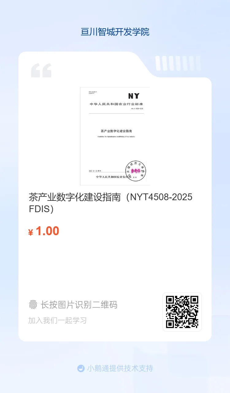无论是茶企、合作社还是种植户,跟着标准走,就能用信息技术打通种植、加工、流通、服务各环节,让茶产业提质增效更有方向~