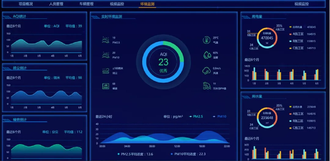 应用价值:某市政项目通过该系统实现扬尘排放减少60%,通过能耗分析节约运营成本15%。