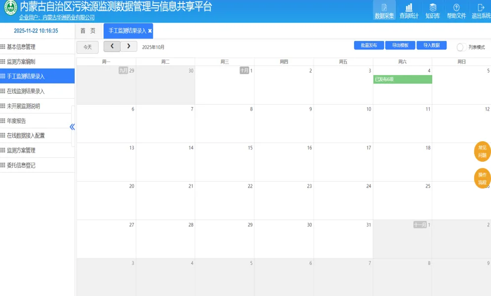 (污染源监测数据管理与信息共享平台操作页面)