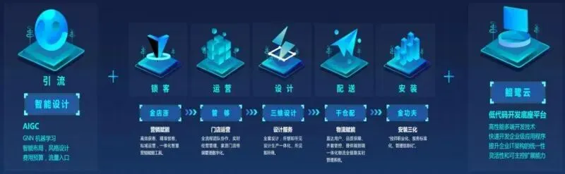 数字化方面,金牌家居构建了“1+5+1”数智基建,通过智能设计、营销赋能、门店运营、设计下单、物流仓配、安装到家等全链路数智化工具,全面赋能门店优化运营管理与服务能力。针对旧改业务,依托金牌家居的品牌影响力及全国布局,结合AIGC、金店涨、管够、三维设计、干仓配和金功夫等数字化工具,金牌旧改局改能够从前期在线体验、智能设计,到后期生产、安装、交付等过程提升服务效率。同时,金牌旧改局改将整合供应链资源保障产品丰富度与高效交付,形成“品质+效率”双驱动。金牌通过数智化将复杂的流程标准化、数字化,创业小白也能快速上手,实现规范运营与服务。