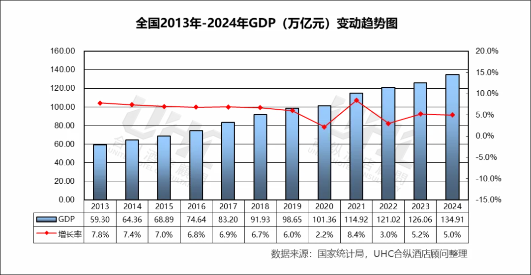 欢迎阅读“2024年度重点城市酒店经营数据观察 | 系列报告之全国篇”。在这篇报告中,我们分析了全国在2013至2024年间GDP数据和旅游业数据的变化趋势,同时解读了全国在同一时期内酒店业的经营状况和发展趋势。我们期望,这些数据能助您深入了解全国酒店行业现状,并为您未来的决策提供数据支撑。