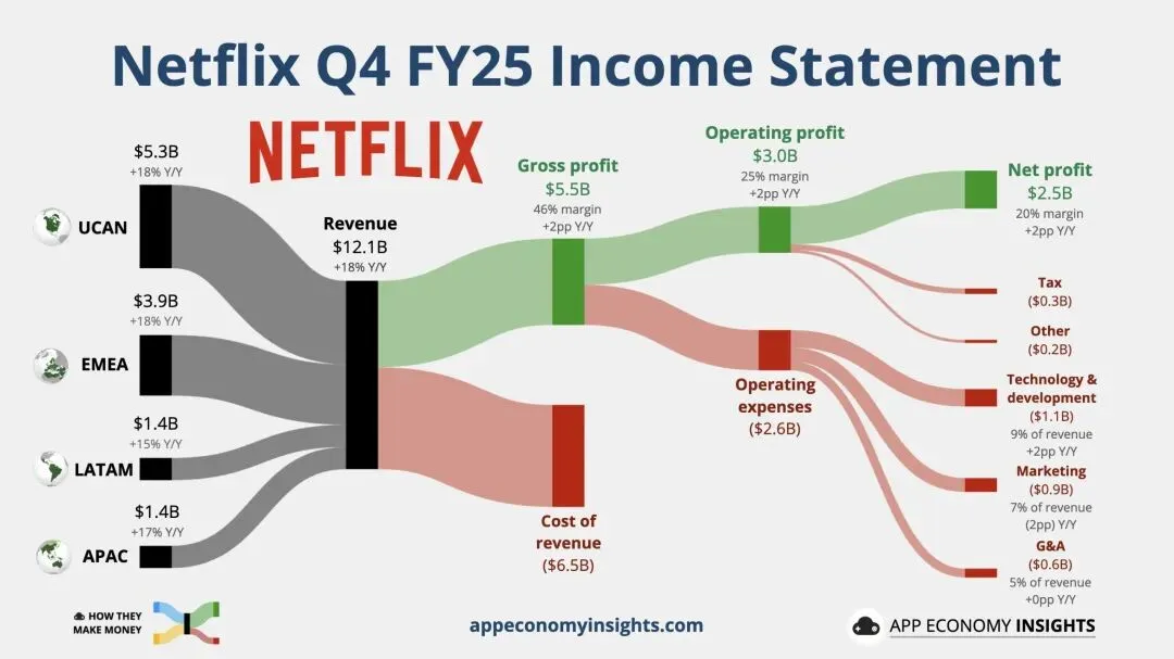 在流媒体行业存量竞争加剧、全球并购浪潮升温的背景下(2026年全球媒体娱乐行业并购额预计突破800亿美元),奈飞的这份财报不仅是对过去一年的总结,更折射出其在规模扩张与利润平衡、短期业绩与长期布局之间的权衡取舍。