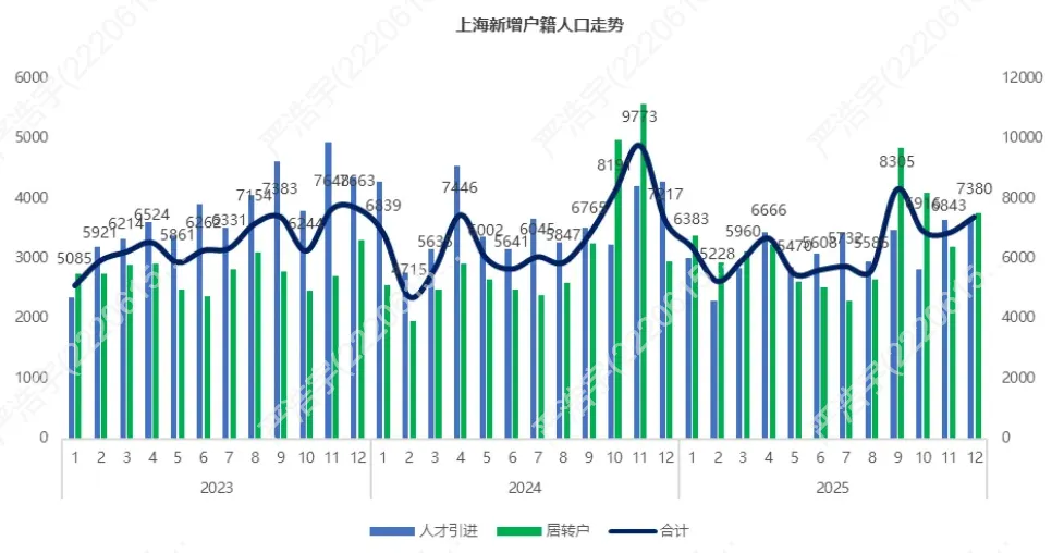 2025年12月落户7380人。其中人才引进3631人,占总新增落户人口的49.2%;居转户3749人,占总新增落户人口的50.8%。