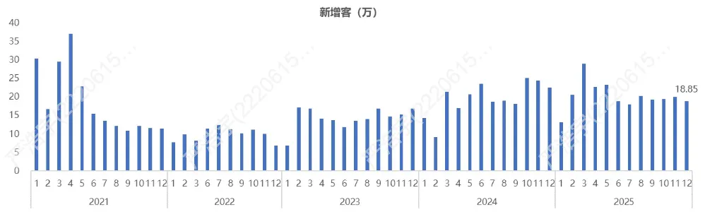 12月新增挂牌房源2.96万套,新增客户18.85万。