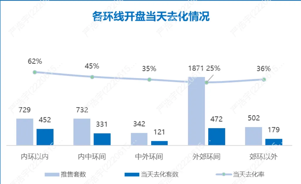 当天去化率约37%,环比持平,暂无触发积分且当日售罄的项目;推房量及开盘成交量均有提升。