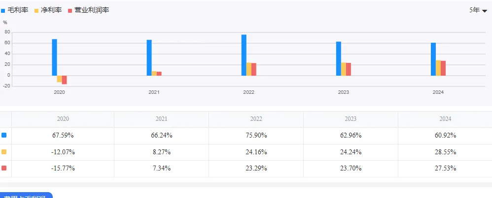 多多的毛利率不错,保持在60%以上。净利润率和营业利润率近几年保持在20%几的比率。