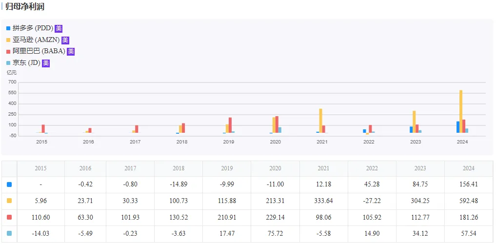 2024年多多的营收547亿美元,归母净利润156亿美元,