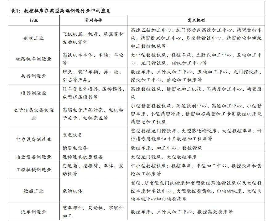 数控机床在制造业各个领域都有不可或缺的地位,数控机床行业的下游包括汽车、电力、机车、船舶、航空航天、石化、工程机械、模具、电子信息等等。近年来,我国机床行业在技术创新、市场需求、产业生态等方面都取得了显著的发展。以 3C 电子产业、新能源汽车产业、大飞机产业为代表的高端制造产业的蓬勃发展为中国本土机床工具产业带来新的需求和机遇,商业航天、低空经济、深海科技、人形机器人等新兴产业的发展,为机床产业开拓了更广阔的市场空间。