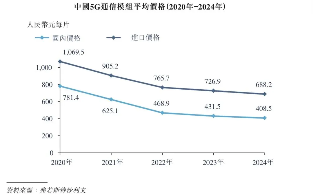 国产芯片、射频(RF)前端与汽车级天线已进入量产阶段。模块厂商透过多功能整合封装、共享测试平台及大规模采购实现持续成本压缩,使4G模块价格维持下行趋势,同时5G模块的溢价幅度正急速缩小。因此,整车厂可在主流车型上将网络性能从4G升级至5G,同时不会大幅增加物料清单(BOM)成本压力,从而加速车载智能网联解决方案的全面普及。