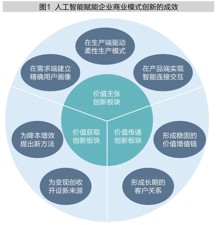 商业模式创新的核心模块包括价值主张、价值传递和价值获取,人工智能在这三大板块均实现了突破性赋能,构建起多主体协同的价值共创体系。