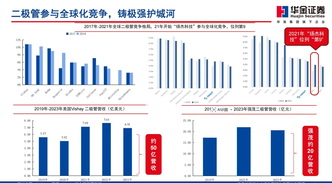 报告显示,国产功率半导体厂商近几年技术突飞猛进,全球市占率已达21%!二极管、IGBT模组等领域,国内企业如扬杰科技、斯达半导已杀入全球市场,甚至在某些领域取代海外龙头成为核心供应商。