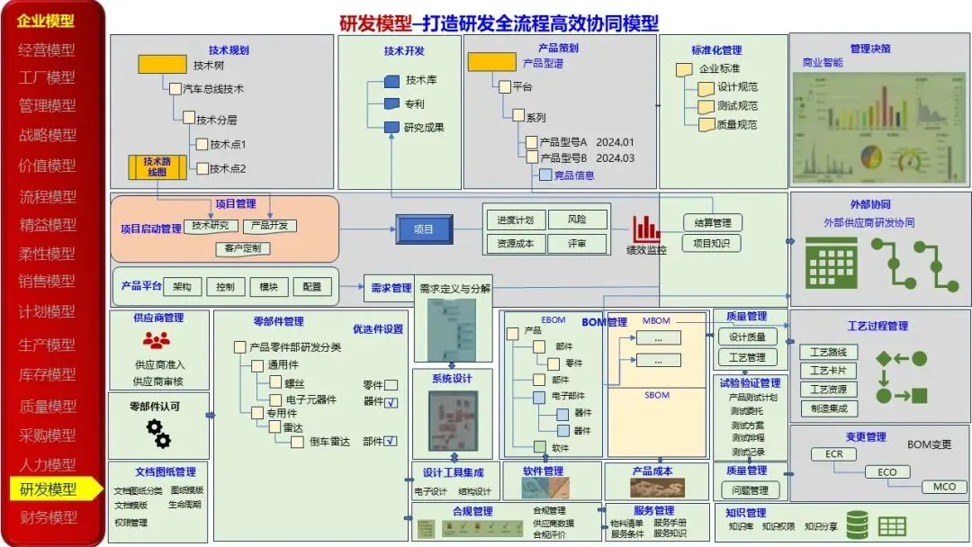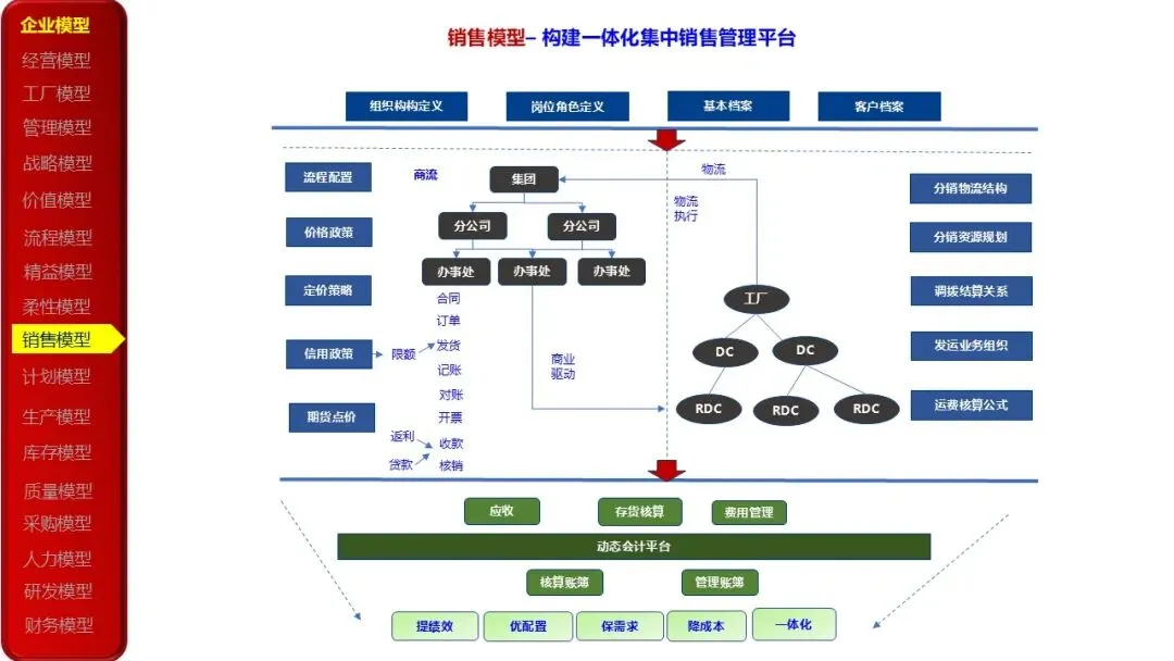 销售、采购、质量、研发、人力、财务等模型均围绕业务一体化、流程标准化、数据驱动化展开,形成闭环管理体系。