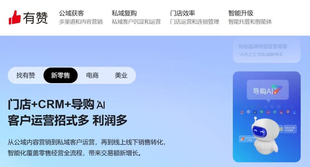 有赞 有赞是全场景商家SaaS服务商,为零售、餐饮、教育、生活服务等提供从微信小程序、APP、直播到会员管理、供应链系统的完整电商解决方案,帮助商家实现线上线下一体化经营。