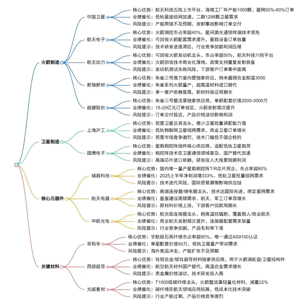 技术风险:研发失败、发射事故影响进度与业绩;如火箭回收、卫星批量制造技术不及预期。