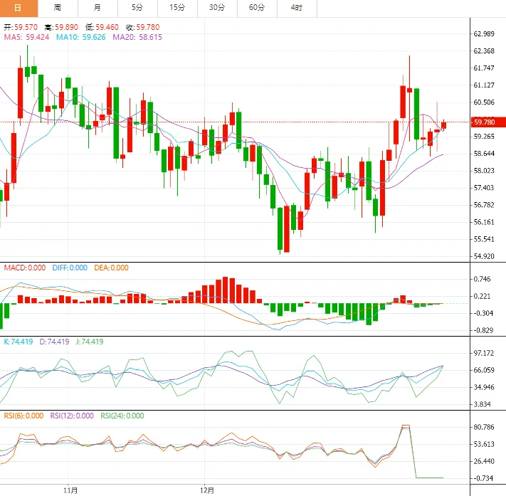 周三美原油小幅走高,交投于 59.70 美元/桶附近,依然处于区间震荡之中,反弹力度有限。其主要受到最新经济数据改善的提振,但市场整体情绪依旧偏谨慎。目前,多空因素交织,油价尚未能形成明确的趋势性方向。