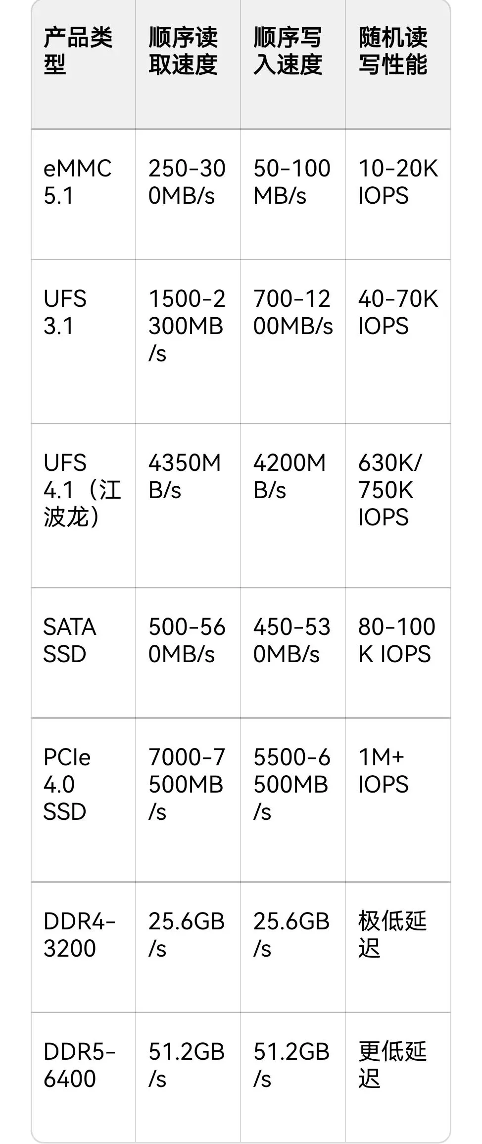 速度是衡量存储产品性能的核心指标,三大产品在这方面差异显著: