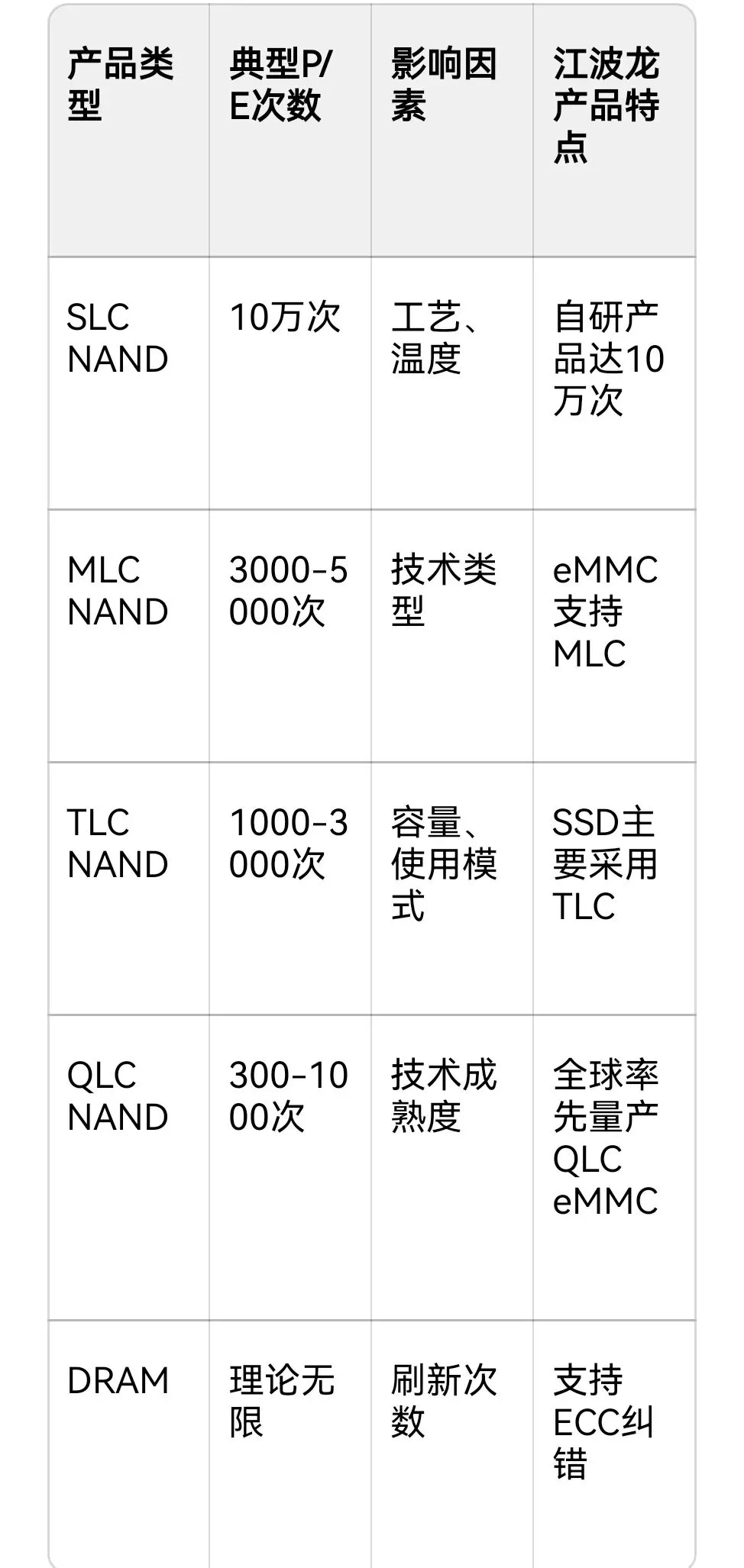存储产品的寿命通常用P/E(编程/擦除)次数来衡量: