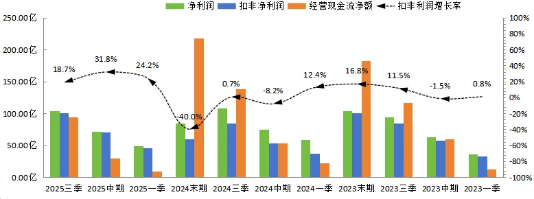 2025年前三季度净利润超过100亿,盈利规模很大。