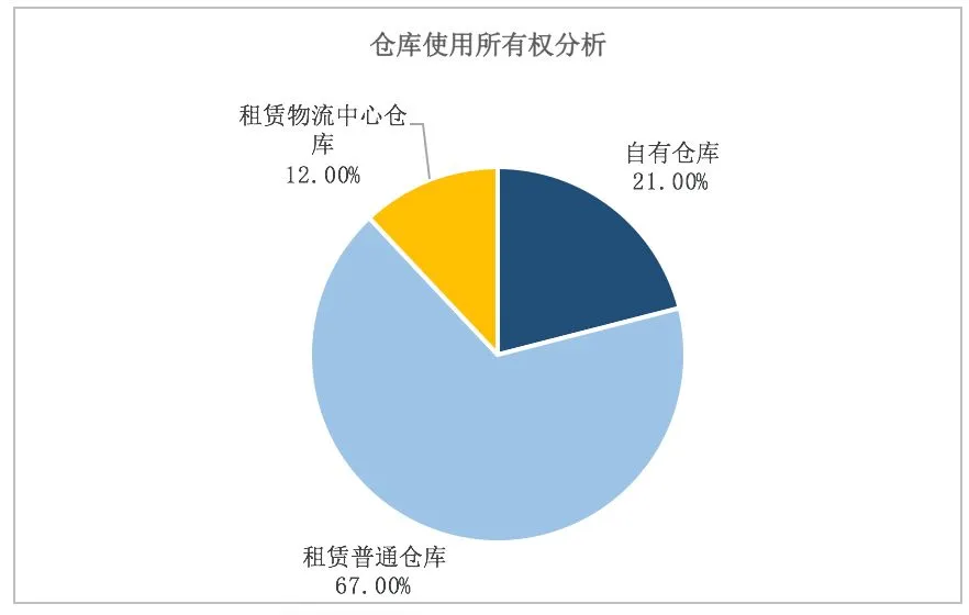 从《新经销》的调研数据反馈来看,中国快消品行业经销商以租赁普通仓库为主,占比约为67%,自有仓库约为21%,租赁物流中心仓库的经销商占比约为12%。