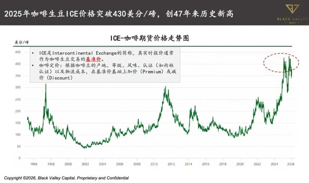 第一级是上游锁死产地资源。中国进口咖啡豆八成来自巴西、哥伦比亚、越南三大产区,瑞幸、库迪早早和产地签订长期供货协议,成功避开ICE咖啡期货创下47年新高的冲击——2025年期货价格突破430美分/磅,咱河南本地不少中小咖啡品牌拿豆成本比头部高两成,根本没资格参与价格战。